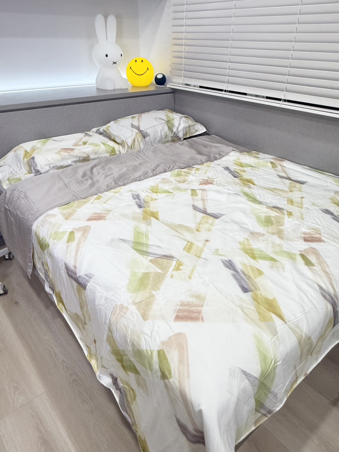 而床單則是以灰色調,也是屬於百搭色,一年四季不論何時使用都不突兀!